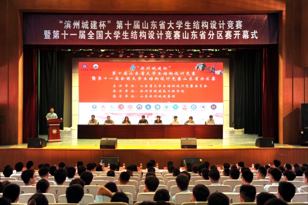 由山东省大学生结构设计竞赛委员会主办、我校承办的“滨州城建杯”第十届山东省结构设计竞赛暨全国大学生结构设计竞赛山东省分区赛开幕式于2017年7月10日在我校学苑会堂隆重举行。来自山东大学、山东建筑大学、山东理工大学、青岛理工大学等16所高校的30支参赛队伍以及志愿者参加了会议。