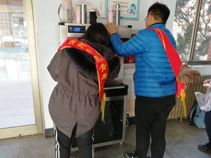 活动伊始,青年志愿者协会所有成员和志愿者们在8号教学楼前集合,按照原计划分组前往不同的活动地点。活动过程中,我院志愿者对教学楼饮水机上残留的垃圾进行了清理,以及对饮水机表面进行了擦拭,并张贴了志愿者们亲手编写的提醒标语。最后,在志愿者的共同努力下,饮水机变得洁净如新,并且保证了同学们的用水安全。