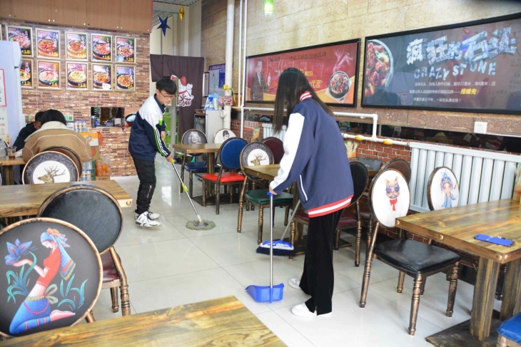 青年志愿者协会的负责人作了简短的动员后,志愿服务活动正式拉开序幕。活动中,近30名志愿者身着“红马甲”,在服务区形成了一道亮丽的风景线。有的在场区内打扫卫生,清理垃圾,有的在服务台前答疑释惑,发放宣传资料;同学们与餐馆工作人员积极配合,干劲十足,充分体现了他们对劳动的热爱,体现了其不怕苦,不怕脏,不怕累的精神,“把劳动最光荣”诠释地淋漓尽致。活动结束后,同学们整理好签字条幅和绶带,交流工作经验以及活动感受。