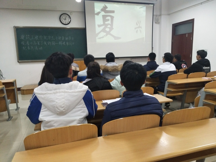 2月18日,建筑工程学院集体观看《厉害了我的国——辉煌中国》纪录片,17级全体学生于八号教学楼203室观看、学生干部于八号教学楼202室观看。