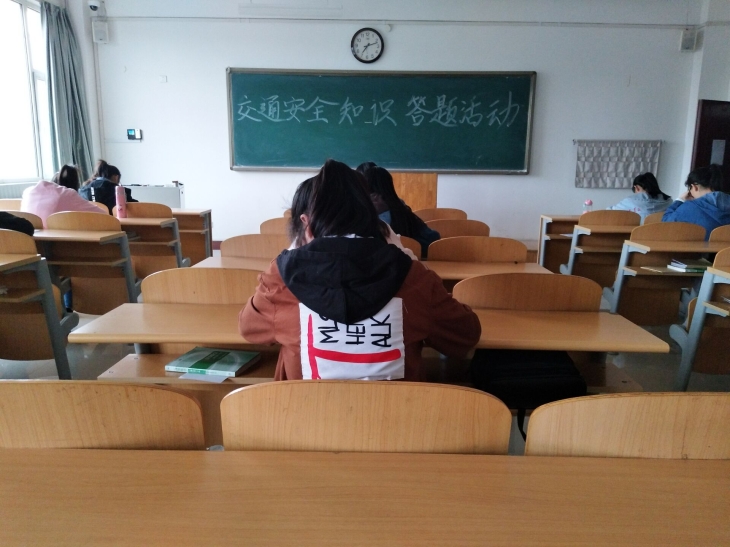 活动伊始,同学们翻阅着关于交通安全的知识点,紧张的准备着答题活动。随后伴随着一阵铃声,答题活动开始。参赛同学手机全部上交,单人单桌,只留着纸笔和答题试卷。参赛同学认真的参与了答题活动。答题内容包括注意交通安全,严格遵守交通法律法规的重要性;启示大家交通安全关乎生命,珍爱生命从安全出行做起,良好的交通秩序需要大家共同来创造。最终,参赛同学全部在规定时间内顺利完成此次答卷。至此,答题活动圆满结束。