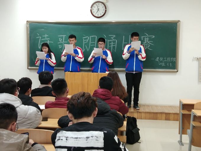 11月9日,我院于8号教学楼201室举办“辉煌四十年奋进新时代”朗诵比赛,18级各班代表参赛。
