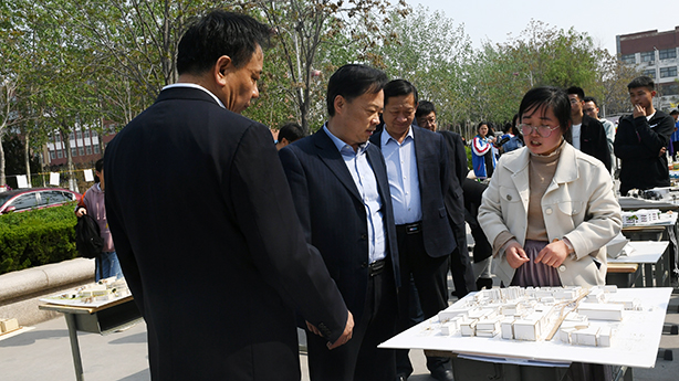 仪式上,胡波与教务处、学生工作处、团委、建筑工程学院负责人共同启动第三届鲁班文化节水晶球,并参观了建筑模型制作展、鲁班文化图片展。