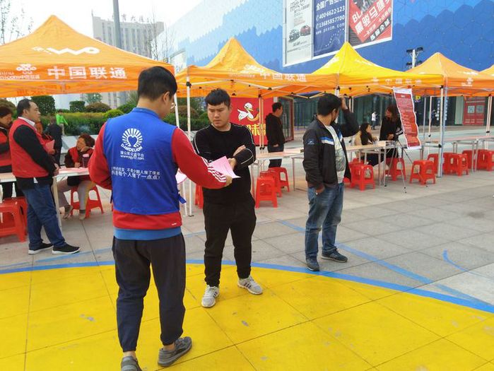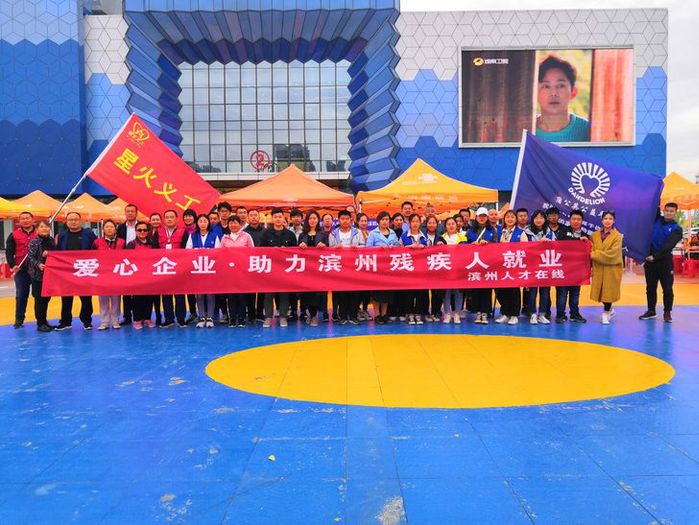 4月27日,我院青年志愿者协会志愿者在滨州万达2号门外广场积极参与了滨州市残疾人联合会举办的“滨州市2019年残疾人就业创业百期专场招聘会”。