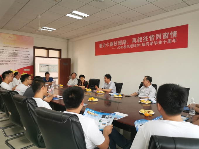 下午,任教老师们与地理科学2009届毕业生在会议室进行了师生座谈会,各位校友对学院近年来取得的成就兴奋不已,大家一同回顾了在校期间的趣事,介绍了十年来个人工作和生活情况,表达了重逢的喜悦之情。老师们说,学校永远是校友的家,欢迎大家常回家。校友们对老师们当年给予的关心和帮助表示感谢,对学校当前的建设感到骄傲,并持续关注学校的发展,为学校发展贡献自己的一份力量。