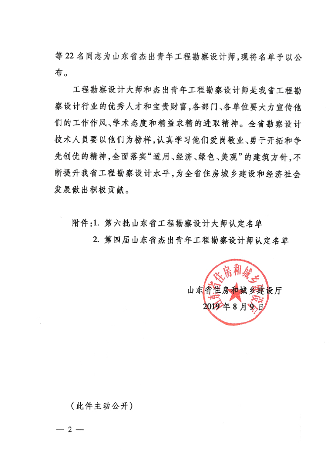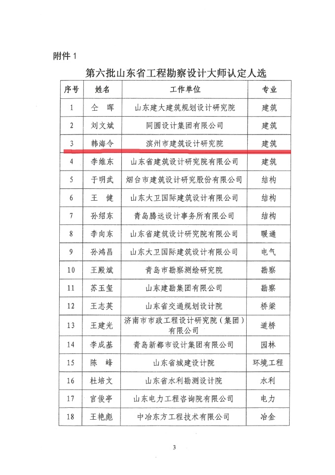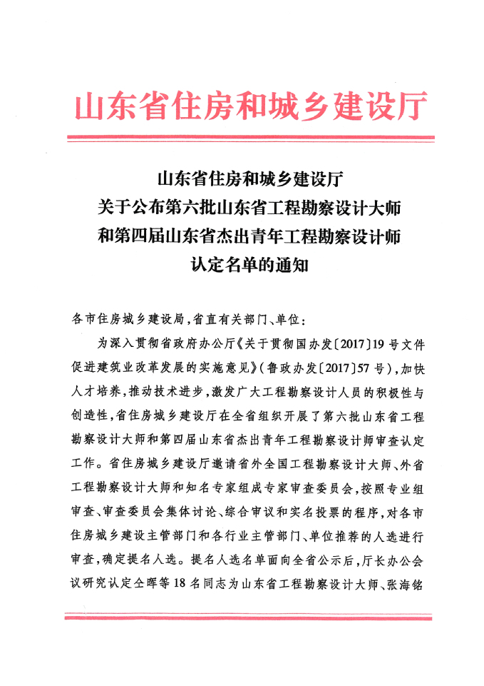 热烈祝贺我校客座教授韩海令荣获山东省工程勘察设计大师荣誉称号