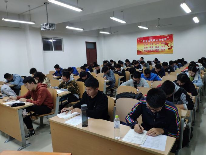 为了教育新生掌握我校关于学生学业、管理和资助等方面的规章制度,规范同学们在校期间的学习行为,指导同学们顺利完成学业,10月21日晚,我院在八号教学楼自习教室举行2019年第一次规章制度模拟考试,2019级全体学生参加考试。