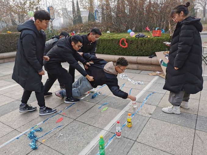 12月7日,建筑工程学院于实验中心门口参加2019级新生宿舍心理素质拓展活动。19级学生代表参加。