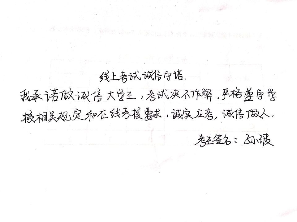 “诚信乃立身之本”,今年首次采用线上考试的形式,更加体现出“慎独”、“自律”的重要性,希望同学们能够本着诚实守信、实事求是的态度在本次期末考试中取得优异的成绩,回报一学期以来各位老师的悉心教导以及家长的殷切希望,为自己的人生道路勾画出最美的线条。