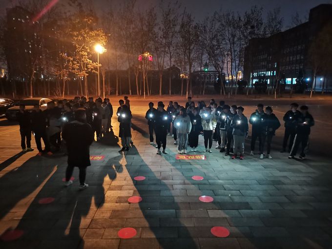 活动开始前,同学们在负责人的引导下开启手机的闪光灯,他们环校夜跑,点点荧光汇成长龙,在奔跑中享受运动的乐趣,虽然时值初春,气温有些寒冷,但同学们依然保持着高度的热情,迎着寒风去挑战自我,看着计步软件上的步数慢慢累积,他们奔跑的脚步更加坚定。闪动的“荧光”队伍形成了一道靓丽的风景线,为夜空下的校园增添了一抹跃动的青春亮色。最终,活动圆满结束。