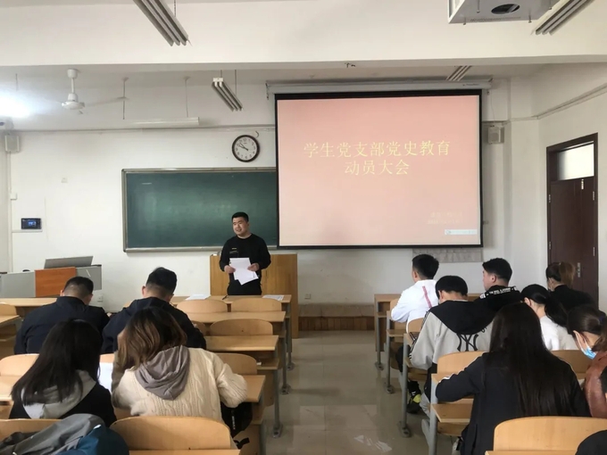 2021年4月13日,建筑工程学院学生党支部在8教201教室召开了党史学习教育动员大会。学生党支部书记董志强主持会议,全体党员参加会议。