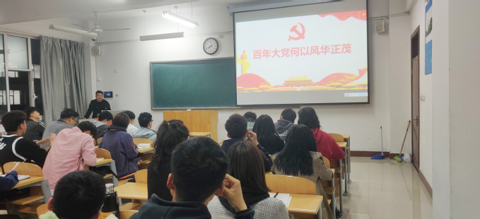 董老师以《百年大党何以风华正茂》为题,从中国共产党为什么能始终走在时代前列,为什么能得到人民的衷心拥护,为什么能勇于自我革命,为什么能经得起各种风浪考验,为什么能永葆朝气蓬勃五个方面展开,深刻阐释了中国共产党的时代性、人民性、革命性、斗争性和青年性,并为同学们梳理了中国共产党自成立百年来的党史。