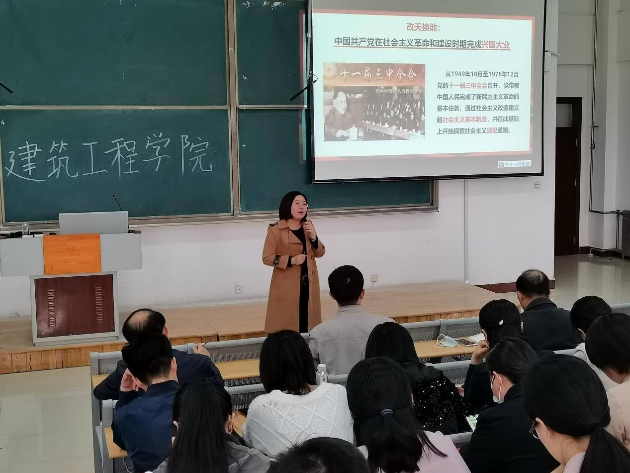 为扎实推进党史学习教育,引导广大师生学党史、悟思想、办实事、开新局,4月20日,建筑工程学院党总支邀请滨州学院理论宣讲团成员、马克思主义学院教师刘娟作党史学习教育专题辅导报告,全体教职工、学生党员和入党积极分子参加了报告会。