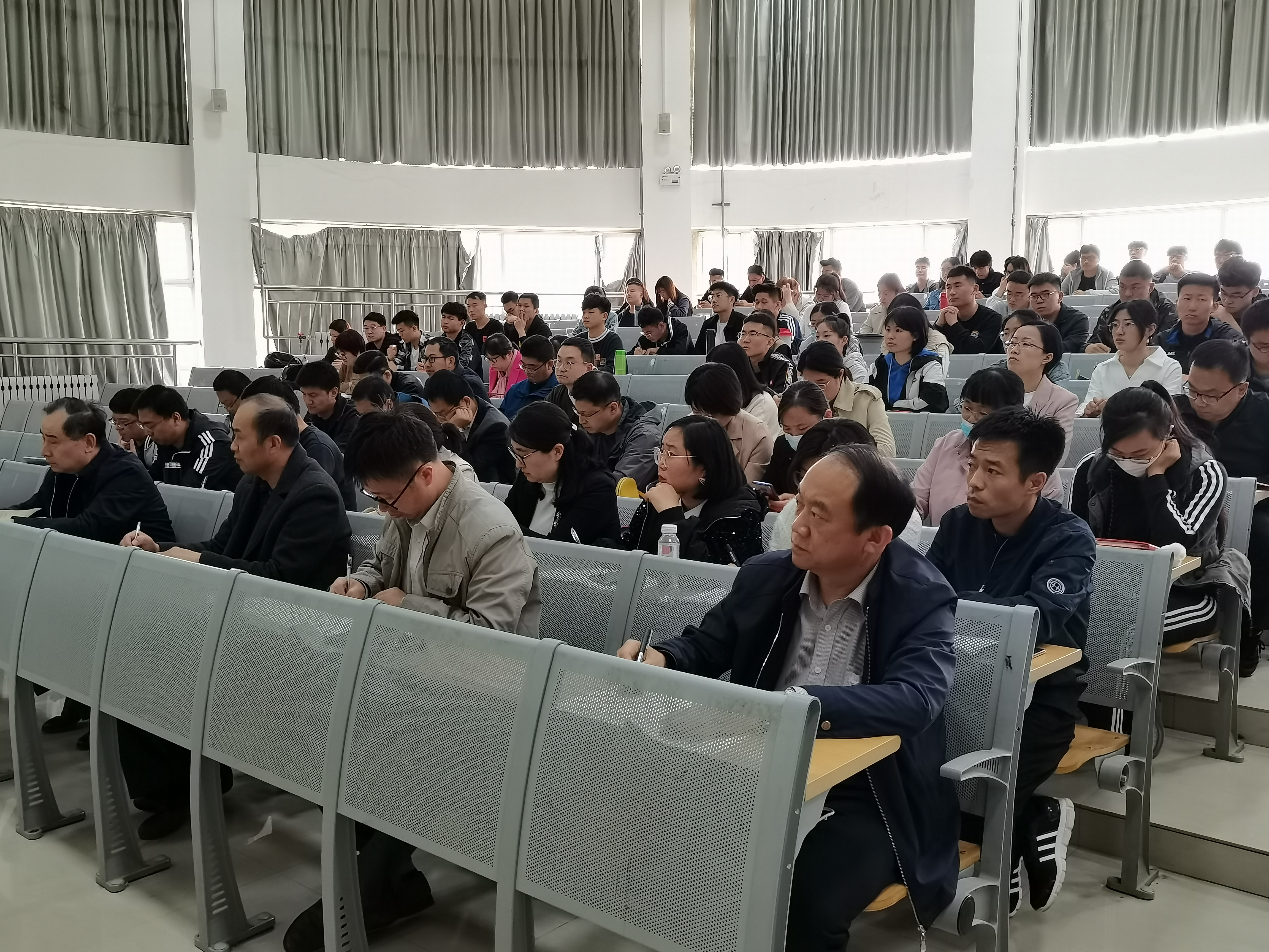 报告以“风雨苍黄百年路 初心如磐向未来——学习党史学习教育动员大会重要讲话精神”为题,从三个方面展开讲解,一是,回顾百年党史。深入学习习近平总书记在党史学习教育动员大会上的重要讲话精神,介绍了百年党史的四个发展阶段,回顾中国共产党从苦难到辉煌的发展历程。二是,树立正确的价值观。唯物史观是共产党人认识把握历史的根本方法,要准确把握党的历史发展的主题主线、主流本质,要旗帜鲜明反对历史虚无主义,加强思想引导和理论辨析。三是,砥砺奋进新时代。学习百年党史,用党的实践创造和历史经验启迪智慧、砥砺品格,为实现中华民族伟大复兴的中国梦贡献青春和力量。