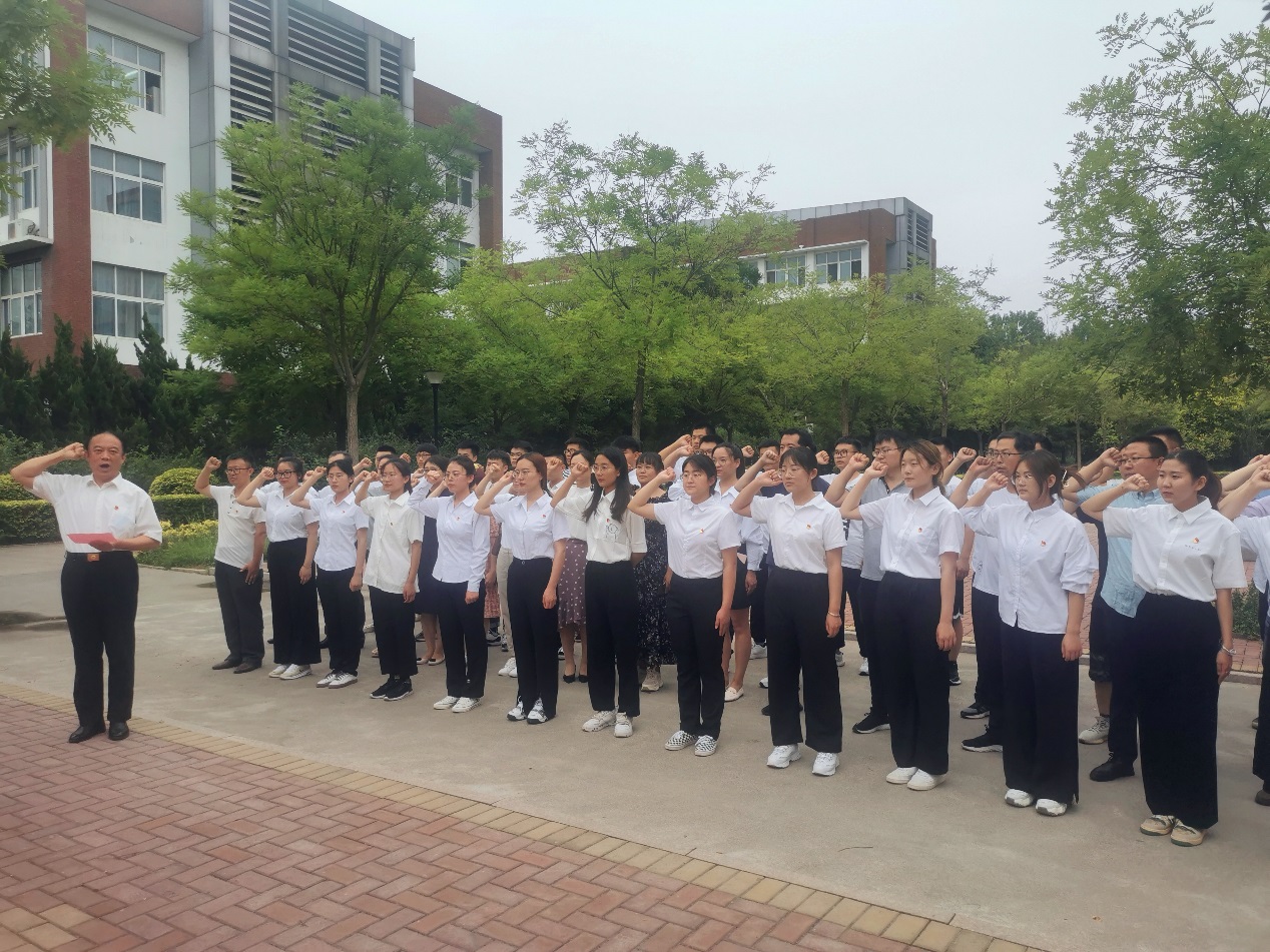 下午,党总支书记李永干带领学院全体党员一起重温入党誓词。铿锵的誓词,让党员们热血沸腾,仿佛重回当初加入党组织的那一刻,更加坚定了自己的理想信念,提高了党性认识。