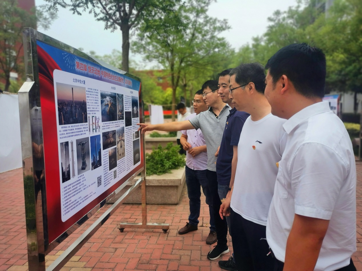 最后,全体党员参观了我院举办的以“听党话、跟党走,建功立业新时代”为主题的百年建筑图片展暨学生设计作品展,大家仔细观看每一幅图片、每一件作品,为我国在党的领导下,在建筑、规划、土木基建等领域取得的辉煌成就所鼓舞,为学生设计作品里饱含的对党和国家的赤诚之心、赤子之情所感动。