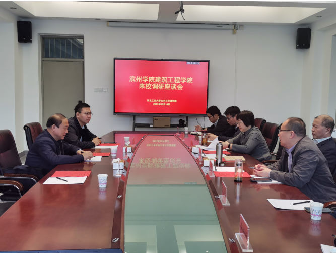 河北工业大学土木系主任周戟、综合办公室主任陈培、土木工程系教师李艳艳教授和陈庞博士,滨州学院建筑工程学院副院长邢雪阳、综合办公室尹振江一同参加座谈。