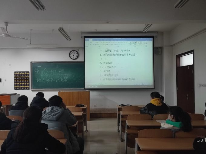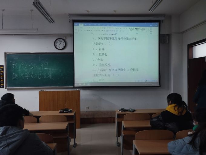 比赛采取现场考试的形式。比赛开始前,组织人员认真准备,提前准备好考试试题,确认到梦空间报名人数,打印出充足的纸质试卷。为了保证比赛的公平公正,同学们赛前积极上交手机。本次知识竞赛活动形式新颖、内容丰富,竞赛试题涵盖了多种常见的地理知识以及地图。题目设置选择,多选,简答等题型灵活考察相关知识,保证了竞赛内容的广度和深度。此次比赛同学们积极报名,踊跃参加,遵守竞赛纪律,监考人员认真负责,竞赛圆满结束。