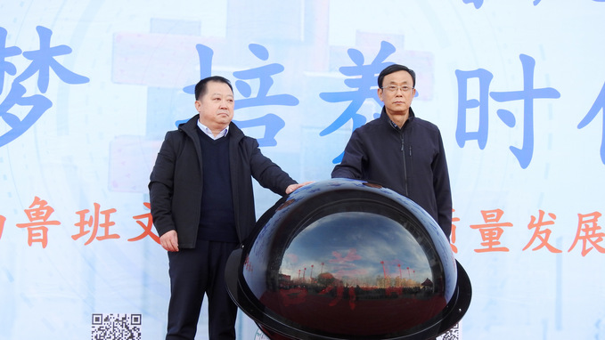 杨玉森和钊京涛共同启动第五届鲁班文化节“水晶球”。