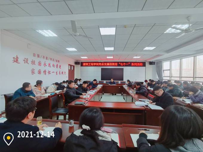 12月14日下午,建筑工程学院党总支书记李永干为全体教职工上了一堂题为《廉洁从教,争做“四有”好老师》的廉政党课。