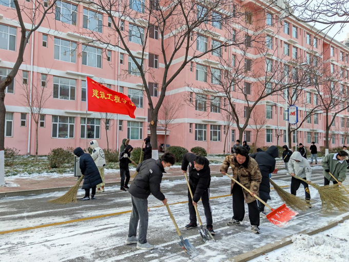 为尽快扫雪除冰、畅通道路、消除隐患,12月24日,建筑工程学院开展扫雪活动。建筑工程学院教师代表、学生党员代表以及学生会成员参加了此次活动。