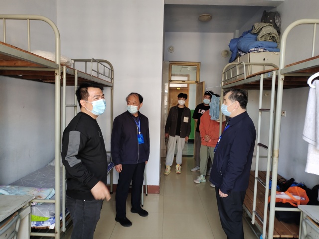 疫情封校期间,为密切关注学生学习、生活状况,检查宿舍卫生,排查下水管道堵塞情况,3月28日,建筑工程学院党支部书记李永干、副书记韩贻强、辅导员董志强、李璐璐深入学生宿舍开展走访活动。