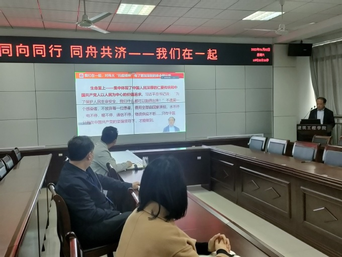 4月2日下午,滨州学院建筑工程学院党总支书记李永干上了一堂名为《同向同行、同舟共济——我们在一起》的专题党课。建筑工程学院5名住校教工现场听课,学院全体教工、学生党员和学生干部共计248人在云端收看了党课直播。