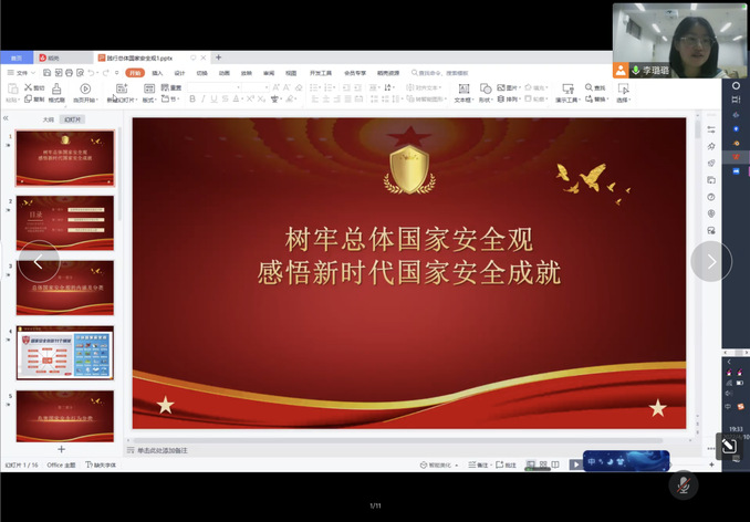 各年级辅导员通过演示文件讲解、观看纪录片等形式进行讲解,强调国家安全是关系到国家存亡的大事,没有国家安全,就没有和平稳定的建设环境,就没有社会主义的现代化。每个公民都肩负有维护国家安全的责任和义务。因而,大学生学习系统的国家安全知识、树立正确的国家安全意识,是其作为现代化建设生力军之必需。让我们时刻保持谦虚谨慎的作风,守护好国家安全屏障,为祖国的富强奋斗终身。