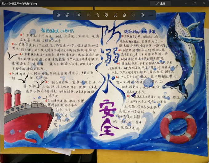 我院根据自身实际情况,结合“防溺水十个一”工作要求,以弘扬“生命至上,安全第一”为主题,组织开展了形式多样的防溺水安全教育活动。此次活动中,同学们以绘画、文章、视频等多种形式,根据防溺水“六不准”的要求,自选相关案例和自护自救等防溺水小知识,发挥创意,以不同的风格来展示自我的防溺水安全知识储备。本次活动同学们深入地学习了防溺水安全知识,拓宽了同学们防溺水的知识面,了解到溺水的危害,同学们深刻体会到此次“防溺水”警示教育课的重要性,提高了同学们的安全意识。大家纷纷表示今后会牢记“六不准”要求,不擅自下水游泳,会到正规的场所游泳;不擅自与他人结伴游泳等。