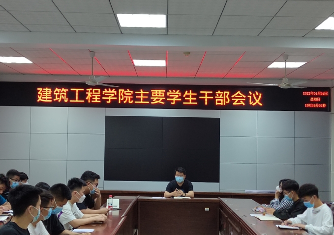 为确保线下各项工作的顺利开展,提升学生干部的素质和能力,4月24日,建筑工程学院于学院会议室召开学生干部大会,全体班长团支书参与了此次会议。