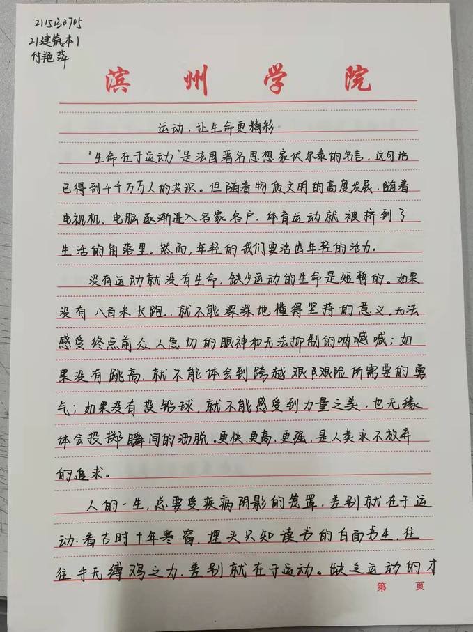 比赛面向建筑工程学院全体学生,以线上报名,线下交作品的方式征集参赛作品。同学们的作品内容丰富多彩,以个人独特的视角阐述了对体育运动的理解,用文字的方式书写同学们对体育运动的热爱,此次活动给热爱写作的同学提供了展示自己的平台,丰富了同学们的课余文化生活,加深同学们对体育运动的认识,丰富了校园文化。