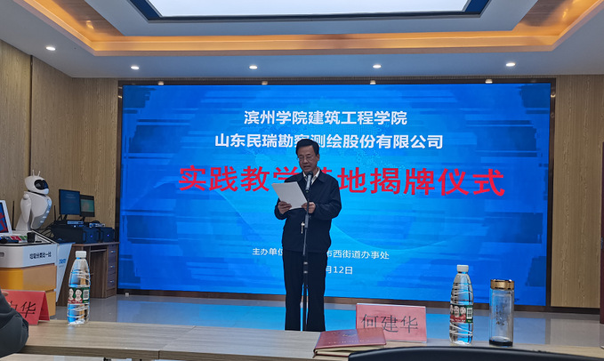 2022年5月12日,我院与山东民瑞勘察测绘股份有限公司校企合作签约暨实践教学基地揭牌仪式,在市西街道彩虹湖社区举行。乡村振兴研究院院长何建华、建筑工程学院副院长邢雪阳、山东民瑞勘察测绘股份有限公司董事长耿中华、市西街道党工委副书记高小刚参加本次活动。签约仪式由市西办事处副主任常健主持。