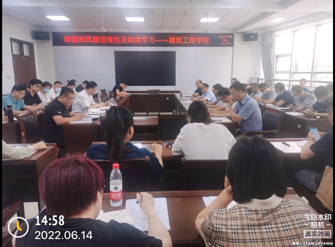 6月14日下午,我院在9教215会议室召开全体教职工会议,进行师德师风建设理论及制度专题学习。