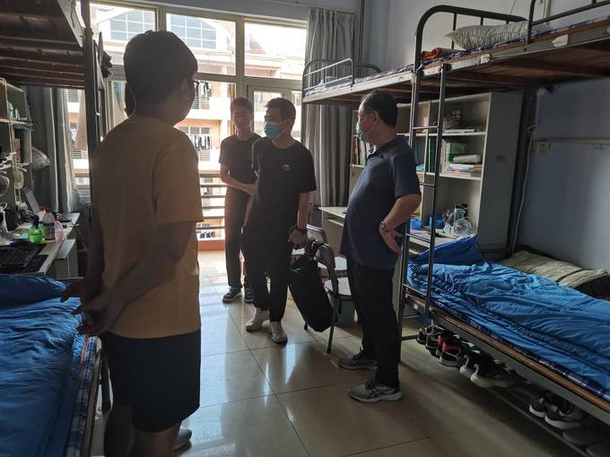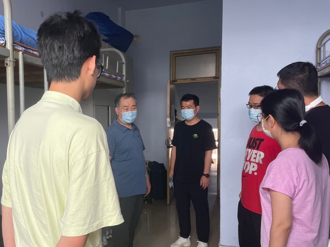 校园相对封闭管理期间,为全面了解学生学习、生活状况,排查宿舍安全隐患,9月5日,建筑工程学院党总支副书记韩贻强、学生科长董志强、辅导员李璐璐走进新生宿舍,看望在校新生。