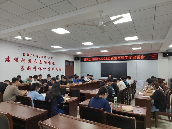 为确保新学期新生军训工作顺利开展,9月16日,建筑工程学院召开新生军训工作部署会,由学生科科长董志强组织召开,学生会副部长以上、督导中心副主任以上及22级全体小班参加本次会议。