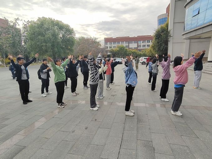 为丰富校园文化生活,增强学生体质,培养集体主义观念,展现同学们积极进取、奋发向上的精神风貌,自10月24日起,建筑工程学院在九号教学楼东广场前开展“阳光大课间”课间操活动。