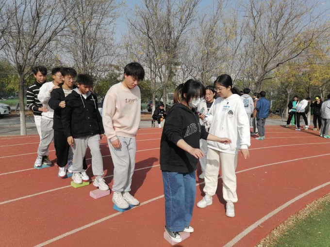 活动伊始,由主持人为各班分组并讲解游戏规则,本次活动包括盲人足球、搭桥过河、吸管运输、心心相印四个游戏,每一项都是智慧与激情的精彩对决,由每支队伍的队长抽签决定游戏的先后顺序。活动期间,辅导员尹彦广老师也来到现场,时刻关注着同学们的动态,同学们更是热情的邀请尹老师加入游戏。在一步步的前行中,需要的不仅是同学们敢于尝试的勇气,更需要团队间互相信任和默契配合,各班同学们团结一心,共同努力。通过团建活动形成积极向上的班级氛围,树立起相互配合、相互支持的团队精神和整体意识,营造了温馨、和谐的班级氛围。最后,主持人组织全体参与人员合影留念。至此,活动圆满结束。