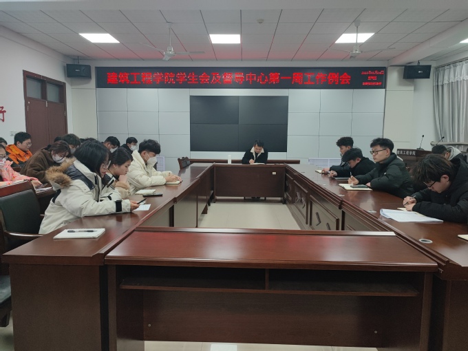 为了更好的开展新学期各项工作,促进各部门之间的交流合作。 2月25日,建筑工程学院学生会及督导中心第一周工作例会在学院会议室召开。学生科长董志强和学生会及督导中心成员参加了本次会议。