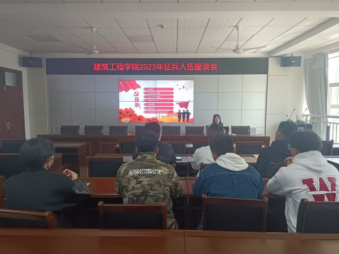 为贯彻落实2023年学院征兵工作安排,坚定大学生参军入伍,矢志报国的坚定信念,4月26日,辅导员李璐璐于学院会议室召开2023年征兵入伍座谈会,我院专科同学通过线上线下相结合的方式参加此次座谈会。