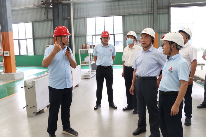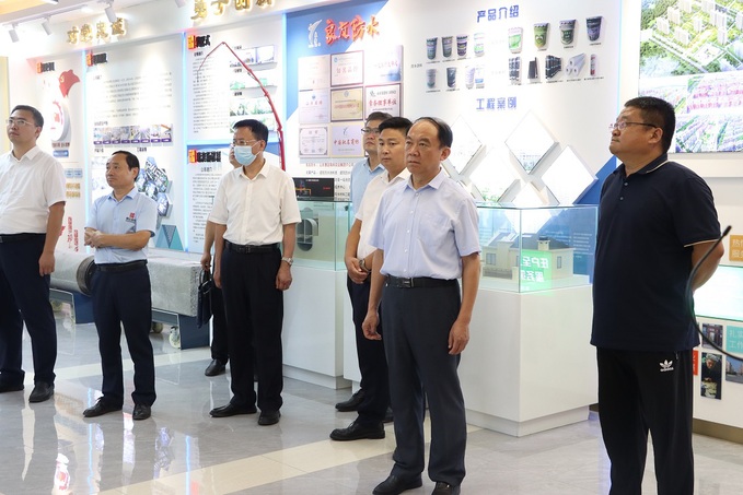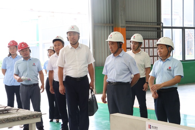 在山东惠达瑞和实业集团副总经理李成顺、王明军等领导陪同下,李永干一行参观了山东惠达瑞和建材科技有限公司、建材公司装配式部品部件生产线、良友防水公司绿色高分子防水材料,装配式工程公司大数据调度中心,听取了相关人员对建材科技、装配式部件生产线及大数据中心等四个板块的介绍。