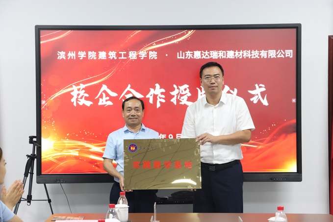 随后双方在集团公司进行了座谈,座谈会由周炜主持。李永干介绍了滨州学院的发展历程和办学特色,邢雪阳从学科专业建设、学生培养、科学研究、实验平台等方面介绍了建筑工程学院的基本情况。随后双方针对新型建筑材料、固废再利用、学生培养基地、研究生联合培养、教育培训等方面展开了热烈讨论并达成诸多共识。座谈会后进行了研究生联合培养基地和学生实践基地授牌仪式。