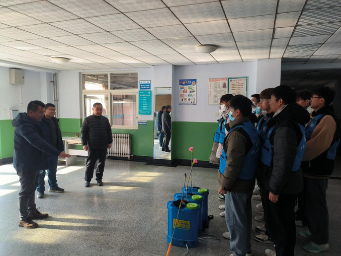 为抑制流感的传播,我院组织志愿者对全院宿舍进行消毒消杀,韩书记对宿舍消毒消杀工作提出要求:一是要全面消杀,不留死角;二是严格按照说明书配比消毒液;三是均匀喷洒在地面上,注意尽量不要喷洒到物体表面;四是做好个人防护,带好手套、口罩等。