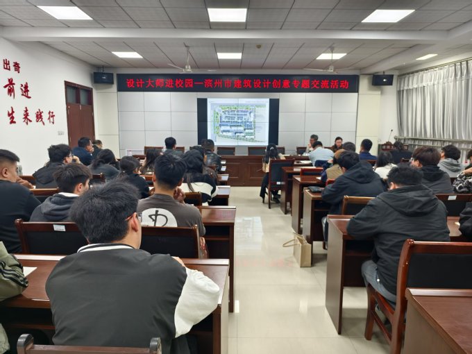 为弘扬优秀建筑设计文化,促进校地产教深度融合,11月1日,我院与滨州市住房和城乡建设局共同举办“设计大师进校园—滨州建筑设计创意专题交流活动”。市住建局科技设计科科长鲍松涛,市建筑设计研究院有限公司董事、副总经理、山东省工程设计大师韩海令,学院党总支书记许广生,学院副院长王林林等出席活动,市勘察设计企业部分注册建筑师和学院师生代表参加活动。