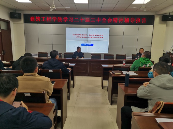 为深入学习贯彻党的二十届三中全会精神,11月5日下午,建筑工程学院在9教215会议室举办学习党的二十届三中全会精神辅导报告会。此次报告会邀请到了马克思主义学院副院长王勇军博士作为主讲人,学院领导、全体党员教师和教职工党外人士代表参加了此次学习活动,党总支书记许广生主持报告会。