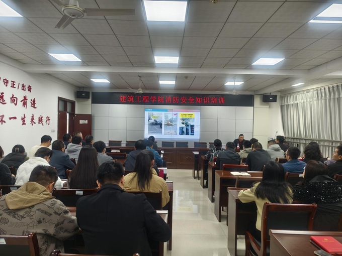 为进一步加强学院消防安全管理工作,宣传普及消防安全知识,提高教师的校园消防安全防范意识和逃生自救能力。我院于11月8日在9号楼215会议室开展消防安全知识培训,本次培训由保卫处相关同志主讲,学院党总支书记许广生主持会议,全院教师参加培训。