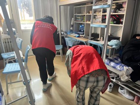 活动中,学生在负责人带领下,穿统一的志愿者服装,带着清洁工具,深入宿舍内部对遗留垃圾与卫生死角进行了全面清扫,细心检查了宿舍设施,对发现的墙皮脱落、设备不全等问题进行了详细记录并即时反馈,力求为同学们打造一个清新、舒适的居住环境。