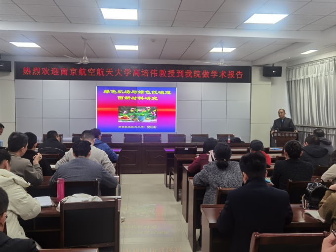 报告会上,高培伟教授就新型机场(道面)绿色化和智能化研究、绿色建筑结构与材料性能劣化监测与服役寿命提升、基于机器视觉和云智慧场道/桥梁缺陷智能监测与预警等方面,结合自身近年来科研经历进行了深入细致的介绍。参会人员就报告内容与高培伟教授进行了深入的探讨交流。