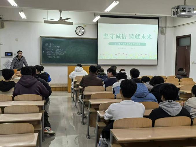 为加强研究生诚信考试意识,深入推进我院学风建设工作,倡导“严肃考风考纪、弘扬优良学风、文明诚信应考”。12月8日,我院召开了研究生考试诚信教育主题班会。旨在通过专业的引导与深刻的案例分析,强化研究生的诚信考试观念,提升他们对考风考纪的重视程度,为顺利参加考试营造良好的学术氛围。