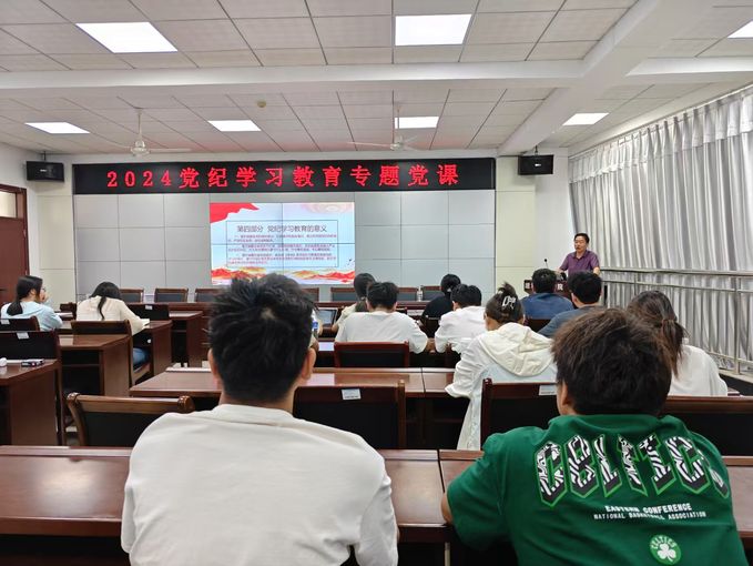 为深入贯彻落实全面从严治党要求,增强学生党员的纪律意识和规矩意识,6月18日,我院党总支书记许广生面向学生党员开展了一场生动且深刻的党纪学习教育专题党课。本次党课在9教215举行,学生党员及部分入党积极分子参加了学习。