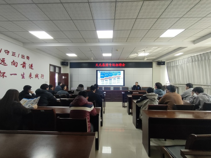 会上,辅导员李璐璐对天元集团两位领导的到来表示热烈欢迎,并感谢公司为毕业生提供优质的就业岗位,希望同学们能够认真听,抓住机遇,积极应聘,将所学知识运用到实际工作中,实现自身价值。